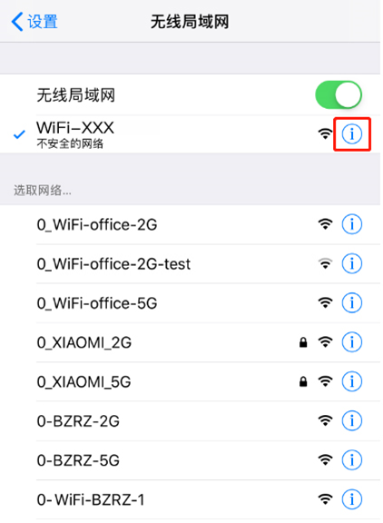 如果误操作点击取消按钮,请转至 设置>无线局域网>关联无线信号,进入无线信号配置界面,如下图