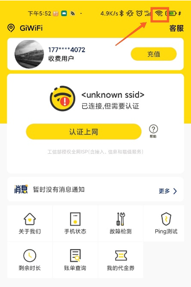 方法1:先确认手机成功连接校园WiFi(手机状态栏会出现WiFi图标),然后再打开APP进行认证;