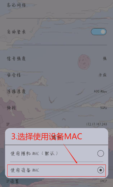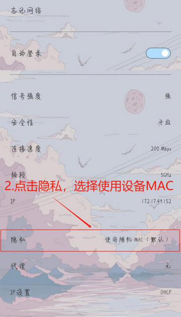 点击隐私,选择“使用设备MAC”按钮