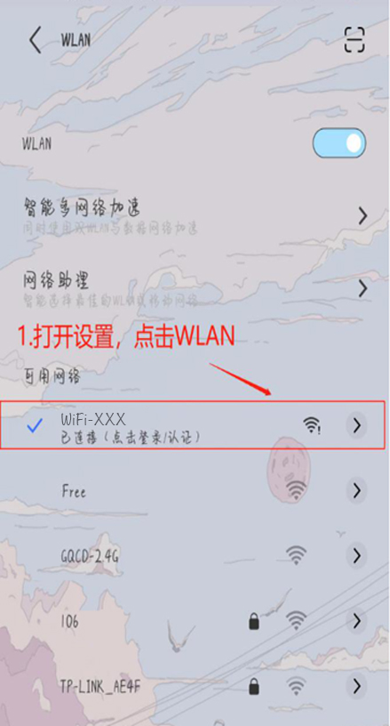 打开手机设置,点击WLAN